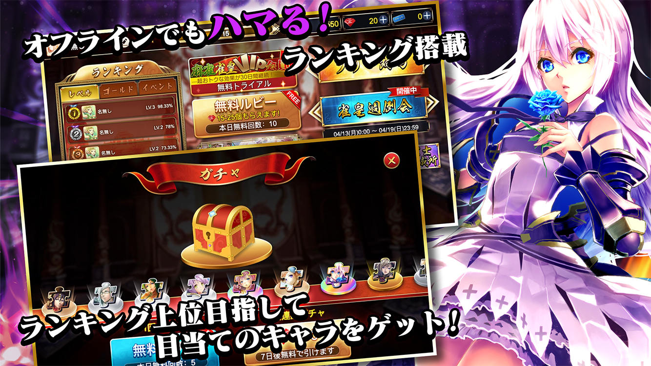 ■全キャラ無料でプレイ!総勢40名のキャラを育成しながら楽しめる本格オフライン無料まーじゃんゲーム